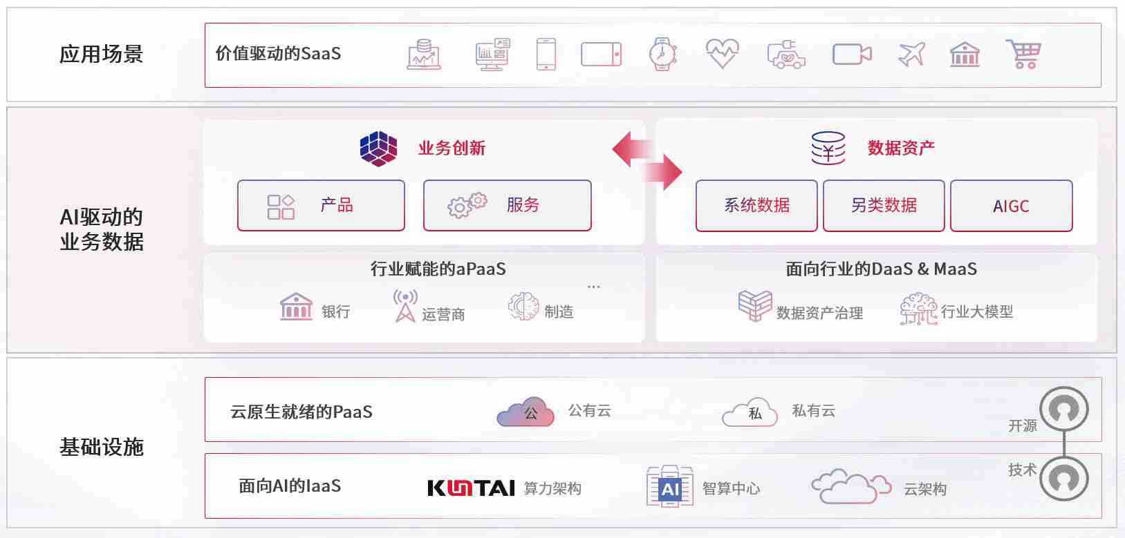 数字时代,,,围绕企业数字化转型的关键要素,,,壹号娱乐数码开创性的提出数云融合战略和技术体系框架,,,着力在云原生、、数字原生、、、AI原生和信创产业上架构产品和服务能力,,,,为处在不同数字化转型阶段的快消零售、、汽车、、、金融、、、、医疗、、、政企、、教育、、运营商等行业客户提供泛在的敏捷IT能力和融合的数据驱动能力,,,,构建跨界融合创新的数字业务场景和新业务模式,,,,助力企业级客户建立面向未来的核心能力和竞争优势,,全面推动社会的数字化、、、智能化转型升级。。。